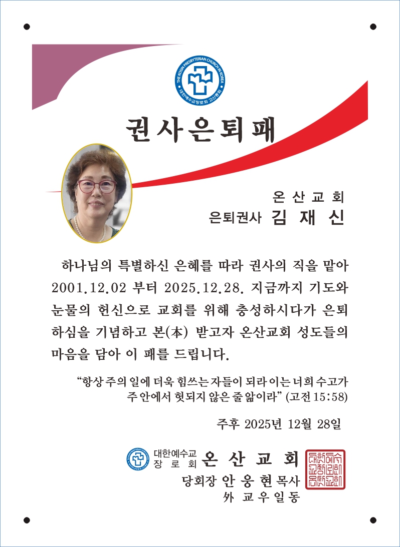 ¾È¿õÇö´Ô - ¿Â»ê±³È¸ ±Ç»çÀºÅðÆÐ ½Ã¾ÈÀÔ´Ï´Ù.